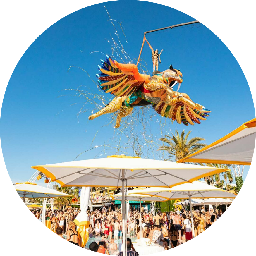 Enjoy complete and immersive views of this Ibiza club and its captivating entertainment, either from an iconic round pool bed, the unifying dance floor or our Mediterranean fusion restaurant. We’re known as one of the best clubs in Ibiza for a reason.